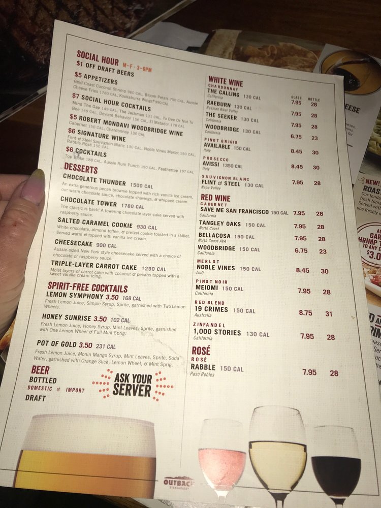 Welcome to Outback Steakhouse CA, located at 5051 Stockdale Hwy in Bakersfield, where good food meets great service. This casual steakhouse shines with a diversified menu that caters to all tastes, including keto, vegan, and vegetarian options. Signature dishes like the iconic Blooming Onion and bone-in ribeye tantalize the palate, while fresh salads, such as the Aussie Cobb, provide lighter choices to balance hearty cravings.